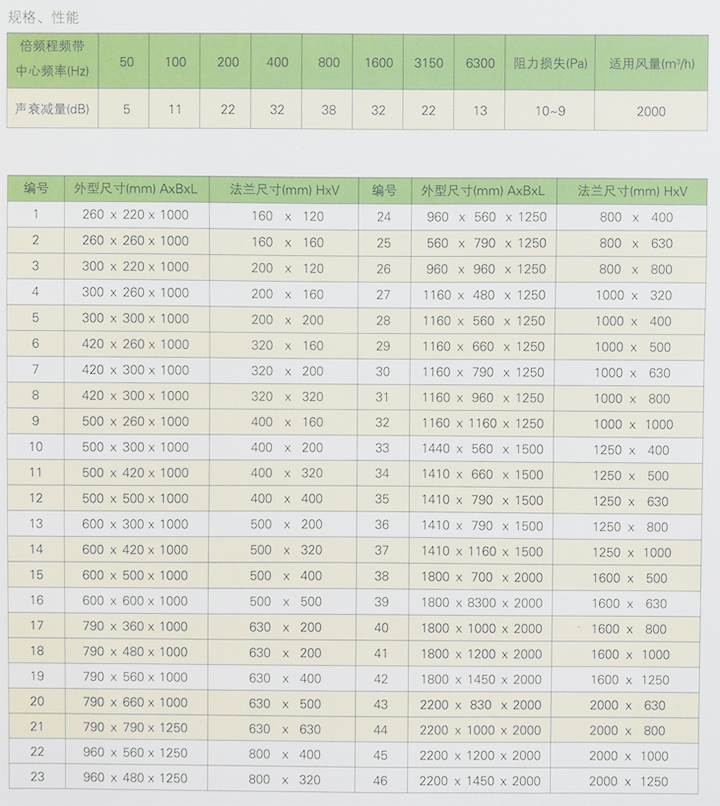 ZP100型消聲器系列是在國家通用圖集T701-6消聲器的基礎(chǔ)上,吸收了國內(nèi)外最新技術(shù),設(shè)計的新產(chǎn)品,是國家建筑標(biāo)準(zhǔn)設(shè)計圖集通用產(chǎn)品。標(biāo)準(zhǔn)號為97T710。 ZP100型消聲器系列主要應(yīng)用于各類通風(fēng)空調(diào)系統(tǒng)中的噪聲治理,可有效地降低空氣動力性噪聲,具有適用風(fēng)量范圍大、系列規(guī)格全、與標(biāo)準(zhǔn) 風(fēng)管配套好、消聲量高、氣流阻力小、防火、防潮、防霉、防蛀等特點,特別適用于種類大型公共建筑,例如:廣播電視大樓、影劇院、賓館、寫字樓等高層建筑的通風(fēng)空調(diào)系統(tǒng)消聲,也可適用于工業(yè)企業(yè)的通風(fēng)系統(tǒng)消聲。 ZP100型消聲器為矩形片式結(jié)構(gòu),采用鍍鋅鋼板制作,咬口拼接。共有49個規(guī)格,處理風(fēng)量范圍為720m /h-90000m /n(也可特殊定制),消聲量為15dB(A)/m,壓力損失14-55Pa(風(fēng)速5-10010m/s)。ZP100型消聲器片厚100mm,單節(jié)有效長度為1000mm,根據(jù)消聲量需要及現(xiàn)場安裝位置的不同,可幾節(jié)消聲器串聯(lián)組合使用。經(jīng)同濟(jì)大學(xué)聲學(xué)所測定,消聲量為15db以上,壓力損失為14-55Pa。 外形示意圖 ZP100-型消聲器規(guī)格選用表